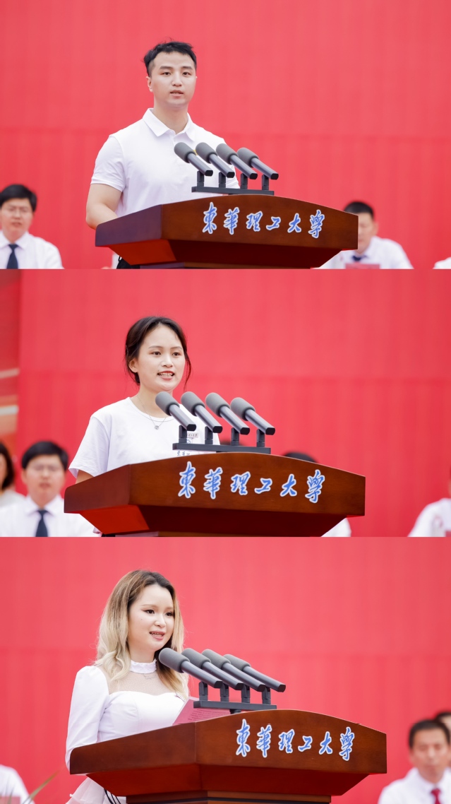 教师代表颜七笙教授寄语毕业生:要知进取、明敬畏、行善良、懂珍惜,以昂扬向上的奋斗姿态奔赴下一场山海,争做未知之境的探索者、繁华盛世的见证者、求实鼎新的践行者。家长代表高利平在发言中表达了对学校的感谢以及对毕业生的祝福。研究生毕业生代表黄逸伟、本科毕业生代表陈丽玉和留学生毕业生代表术帕拉在发言中回顾了在校求学的难忘时光,表达了对学校的眷恋之情,对师长同窗的感激之情以及对未来的美好憧憬。