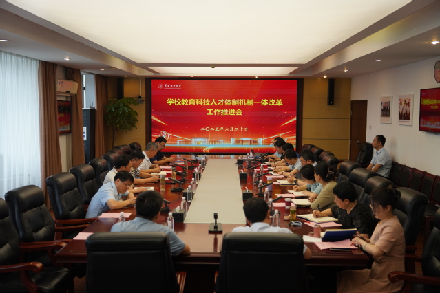 6月20日,爱体育官方网站召开教育科技人才体制机制一体改革工作推进会。校党委书记张福庆出席并讲话,校党委常委、副校长熊国保主持,校党委常委、宣传部部长刘剑斌出席。