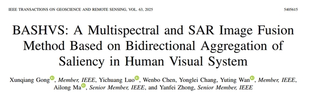 近日,爱体育官方网站测绘与空间信息工程学院龚循强副教授研究团队在中科院SCI一区TOP期刊《IEEE Transactions on Geoscience and Remote Sensing》(最新影响因子:8.6)发表题为BASHVS: A Multispectral and SAR Image Fusion Method Based on Bidirectional Aggregation of Saliency in Human Visual System的最新研究成果,相关代码在github上公开(https://github.com/CHUANGL8346/BASHVS)。
