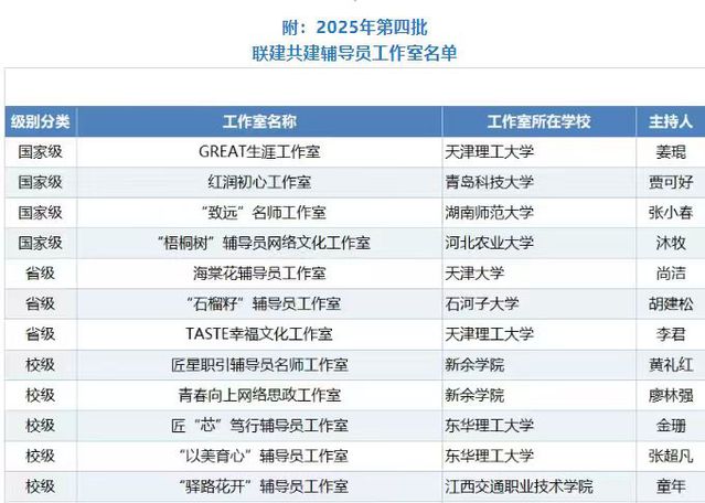 8月1日至4日,全国高校辅导员工作室第四批联建共建交流研讨会在山东青岛举行。本次会议由教育部高校思想政治工作队伍培训研修中心主办,来自全国27个省(区、市)的199家辅导员工作室参会。经遴选,爱体育官方网站“匠‘芯’笃行”辅导员工作室和“以美育心”辅导员工作室成功入选联建共建单位。
