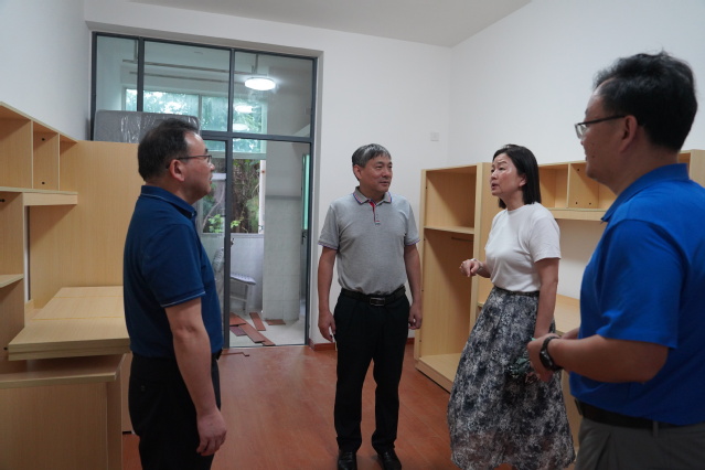在北区学生公寓、西区学生宿舍及南区研究生楼等暑期维修改造现场,罗仙平逐一查看宿舍内部设施更新、公共区域修缮、卫生保洁及消防安全通道畅通情况。他指出,各部门要进一步提高站位,强化责任意识,牢固树立“以学生为中心”的理念,积极听取学生意见,持续改善学生学习与生活条件,努力为学生营造安全、舒适的生活环境。