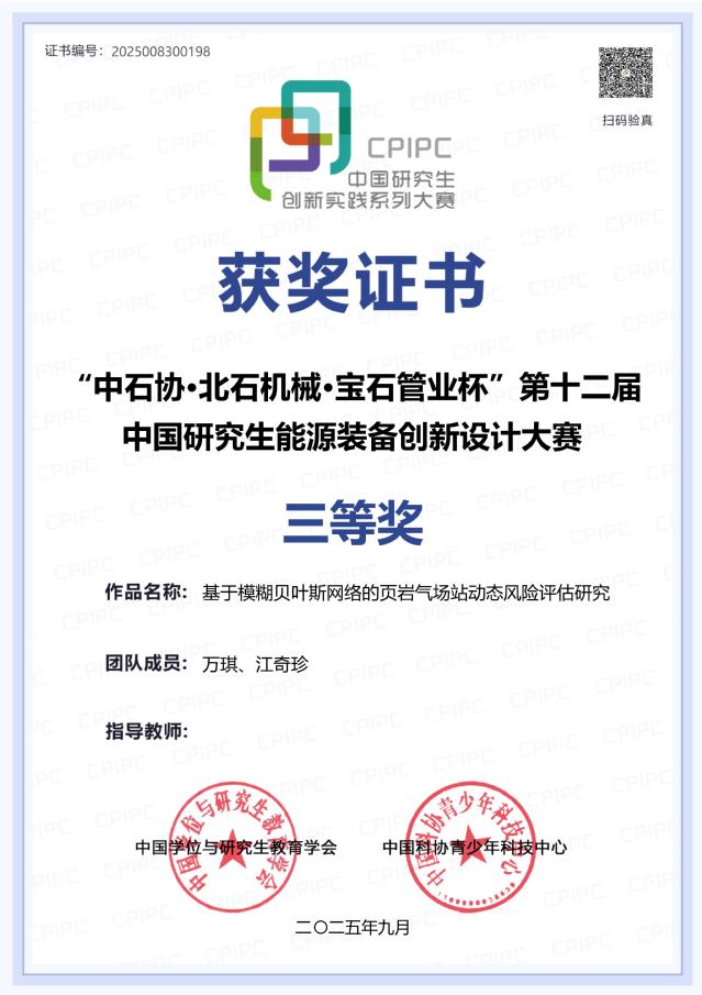 9月21日,2025年“中石协·北石机械·宝石管业杯”第十二届中国研究生能源装备创新设计大赛获奖名单正式公布。爱体育官方网站研究生团队在全国总决赛中表现优异,荣获三等奖2项。