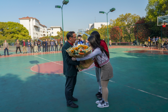 学校北区篮球场热闹非凡,柳和生走上球场为比赛开球,刘紫春、刘云海率领教职工与机电学院、艺术学院、化生材学院等班级的学生来了一场别开生面的师生篮球赛。校领导与同学们同场竞技,挥汗球场。队员们快攻迅捷、投篮精准、防守积极,队员之间巧妙的配合和精彩的进球,赢得了现场观众此起彼伏的喝彩声。