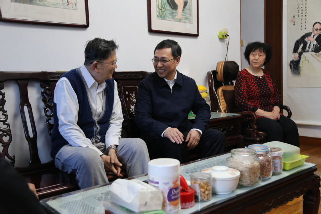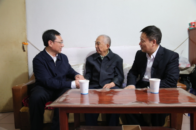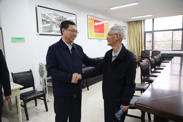 范小林还分别走访慰问了原华东地质学院党委书记王壎、太谷地质专科学校创校元老王正清、抗战离休老干部王永珍、留苏归国学者史维浚、抚州地质专科学校首届毕业生张燮。每到一处,范小林与老同志亲切交谈,仔细询问每位老同志年龄、籍贯、身体情况和来校工作时间,感谢老前辈为学校今天的发展打下的坚实基础,衷心祝福他们保重身体,健康长寿。