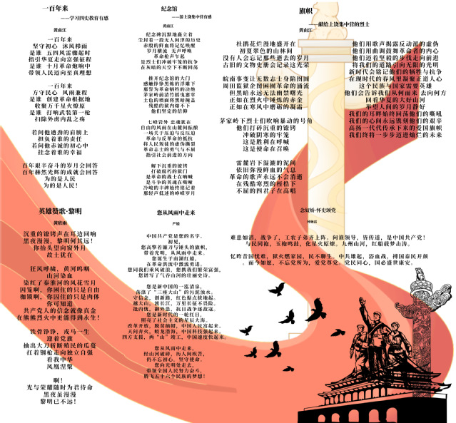 此次活动的成功举办,充分展现了我校学生的文化风采和文学实力,弘扬了诗歌散文体裁作品的文化底蕴,丰富并扩展了红色文化内涵的影响力,营造了党史学习教育浓厚氛围,进一步教育引导学生“知史爱党、知史爱国、知史爱校”,让同学们在思想上向党看齐,在行动上跟党奋斗,在情感上与党同心,用青春建功新时代。(图/段雅卿 杨彬 文/苏幸 余丹)