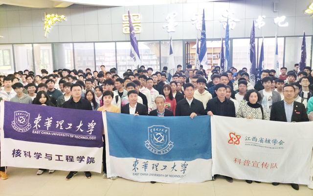 汤彬在讲话时指出,学校“为核成立,因核成名,以核成势”,“核”是学校的特色和名片。学校一直秉承“四个一切”的核工业精神,延续着“以身许国、兴核强国”的核军工文化,每年通过专题讲座、学术报告、专业竞赛、社会实践、媒体宣传等多种沟通方式开展核安全知识宣传教育,扎实推进核军工文化建设。进入新时代,我们东华理工人肩负着助力国家核能建设,实现“碳达峰、碳中和”战略目标的新使命,希望同学们秉承“敦本务实、崇义奉公”校训,涵养家国情怀,奋进新时代,展现新作为,为我国核能建设和核事业发展、为富裕美丽幸福现代化江西建设作出积极贡献。