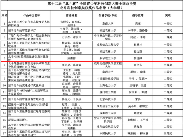 第十二届“北斗杯”全国青少年科技创新大赛结果日前公布。在我校测绘工程学院吴汤婷老师的指导下,由2018级本科生应雨露撰写的科技论文“北斗/GNSS数据质量评估及对比分析”荣获北斗科技创意类赛道(大学组)全国二等奖、江西省一等奖,是今年江西赛区此赛道唯一荣获全国总决赛奖项的作品。