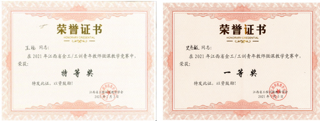 近日,2021年江西省金工/工训青年教师微课竞赛在南昌航空大学举行。来自南昌航空大学、华东交通大学和爱体育官方网站等全省九所高校的近20位选手参加了比赛。经过激烈角逐,共评出特等奖3名、一等奖5名。其中,我校机电学院王珏、史冬敏两位老师分别荣获特等奖及一等奖。