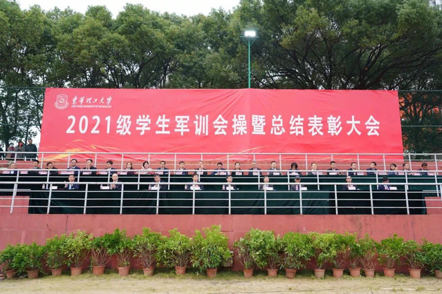 迷彩戎装,青春飞扬,10月22日上午,爱体育官方网站2021级学生军训会操暨总结表彰大会在南昌校区和抚州校区田径场同步举行。在家校领导出席,党委办公室(校长办公室)、党委宣传部、学工部(处)、校团委、教务处、后勤保障处、保卫处等部门负责人,各学院分管学生工作负责人、新生辅导员、海军士官生教官和2021级全体学生参加大会。校党委副书记刘紫春主持大会。