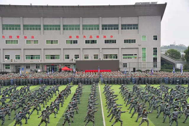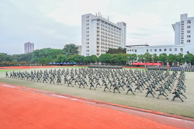 上午9:40,校党委书记范小林宣布爱体育官方网站2021级学生军训会操开始,伴随着雄壮的分列式进行曲,各学院新生受阅方队迈着矫健的步伐,喊着响亮的口号,以饱满的精神面貌接受了检阅,充分展现了良好的精神风貌。