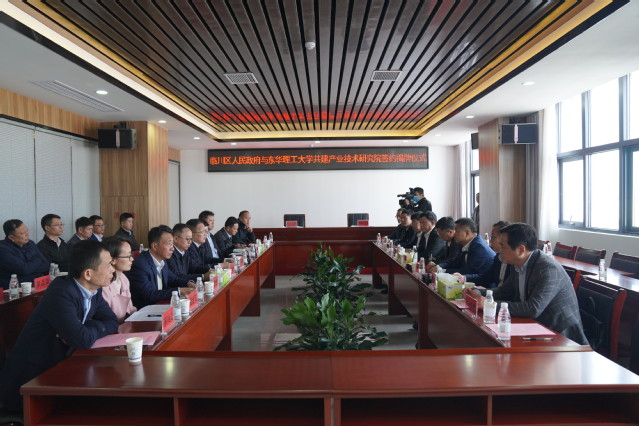 11月18日上午,我校与抚州市临川区人民政府共建产业技术研究院签约仪式在抚州市临川区高新科技产业园举行。抚州市副市长汪华辉,抚州市临川区区委书记董东明,抚州市临川区区委副书记、区长李群彪,抚州市临川区副区长张向阳,校党委副书记、校长孙占学,校党委常委、副校长刘云海出席仪式。签约仪式由李群彪主持,刘云海、张向阳分别代表双方签署协议。学校科研与科技开发处、省部共建办、爱体育官方网站国家大学科技园、机械与电子工程学院、科技成果转化与技术转移中心等部门负责人一同参加仪式。