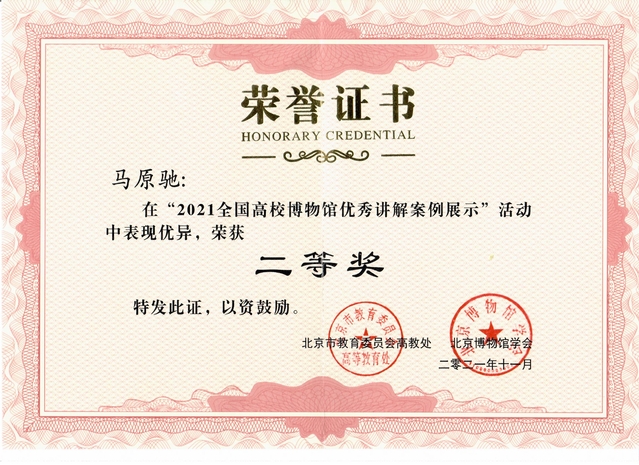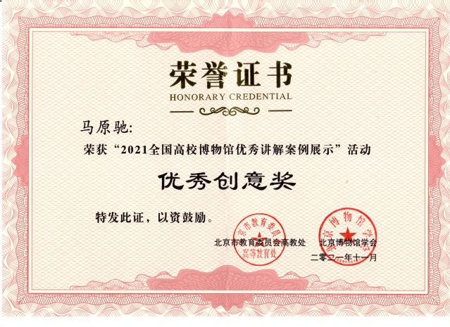 12月17日,由北京市教育委员会、北京市文物局、北京博物馆学会主办,北京高校博物馆专业委员会、北京高校博物馆联盟、京津冀高校博物馆联盟承办,中国传媒大学协办的“第七届中国高校博物馆馆长论坛暨2021年全国高校博物馆优秀讲解案例推介展示发布仪式”在北京广播大厦隆重举行。我校地质博物馆志愿者、地球科学学院马原驰同学讲解的作品《走进石英—自然界中分布最广的造岩矿物》荣获优秀讲解案例二等奖及优秀创意奖。彭花明教授全程指导。