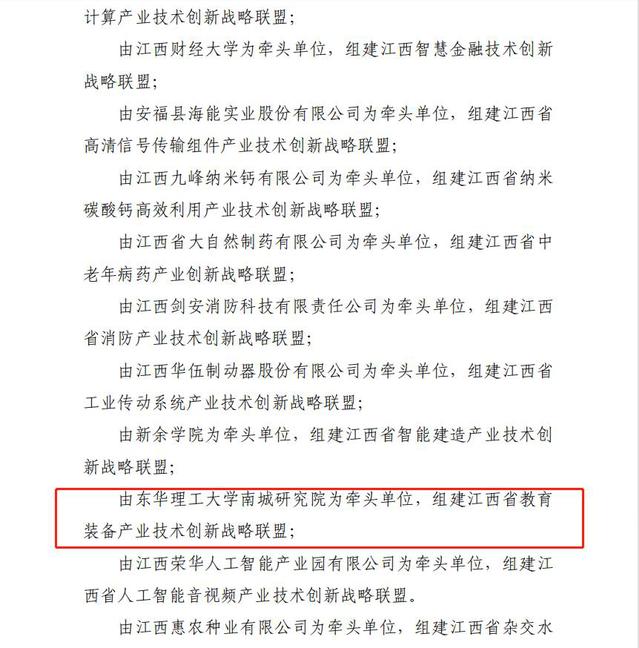 为加快建立以企业为主体、市场为导向、产学研相结合的技术创新体系,近日,江西省科技厅下发了《关于同意组建20个省级产业技术创新战略联盟的通知》(赣科发政字【2022】6号),由爱体育官方网站南城研究院为牵头单位,组建江西省教育装备产业技术创新战略联盟。