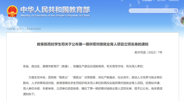 据悉,供需对接就业育人项目是教育部高校学生司为落实党中央、国务院“稳就业”“保就业”决策部署而开展的,以深化产教融合、校企合作,推动人才培养与就业有机联动、人才供需有效对接为目的的就业育人项目。(图/文 曹薇)