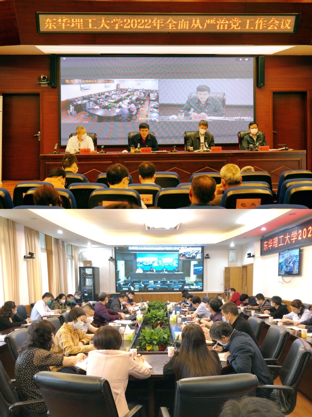 张福庆全面总结了我校2021年全面从严治党工作。他指出,一年来,学校坚持学深悟透习近平新时代中国特色社会主义思想,抓好党史学习教育,全面从严治党思想基础进一步夯实;严格落实全面从严治党主体责任,坚持与学校各项工作同部署、同落实、同考核,全面从严治党责任链条进一步拧紧;不断加强党的组织建设,推动学校党建与事业发展深度融合,全面从严治党基层力量进一步激活;持续推进党风廉政建设,坚持“三不”一体推进,全面从严治党监督质效进一步提升。