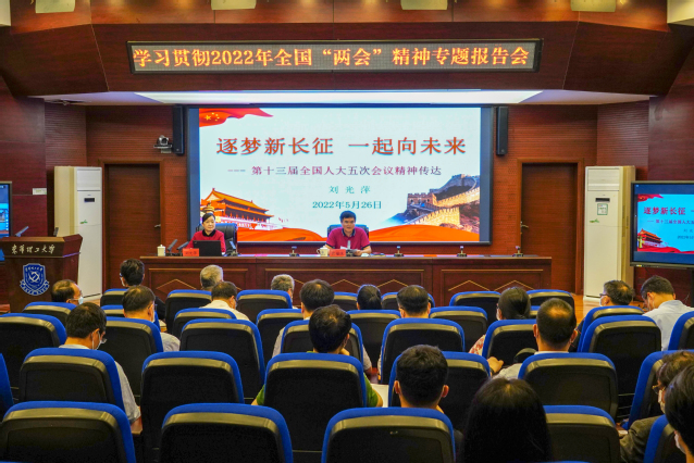 5月26日上午,在疫情防控取得阶段性胜利之际,学校在南昌校区行政办公楼一楼报告厅和抚州校区行政办公楼三楼会议室召开深入学习贯彻2022年全国“两会”精神专题报告会(视频)。校领导,各处级单位党政主要负责人,思政课教师、辅导员、学生代表参加会议。校党委书记张福庆主持会议。