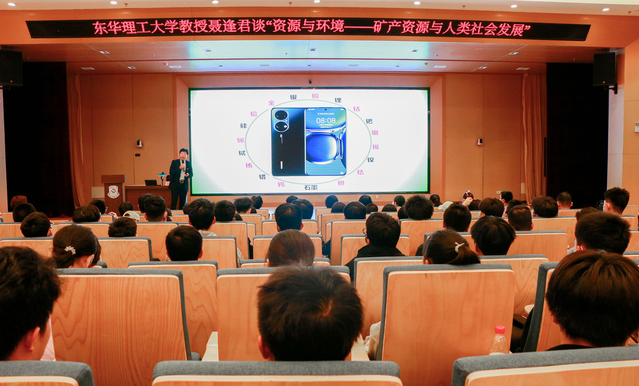 聂逢君介绍了矿产资源在人类社会发展中的重要意义。他采用图文结合的方式,讲述了世界矿产资源分布的特点、开发与利用存在的问题,目前中国矿产资源开发利用的现状,以及我校在矿产资源尤其是核矿资源采冶开发利用方面所做的贡献,加深了师生们对“推动绿色发展,促进人与自然和谐共生”绿色发展理念的理解。讲座中聂逢君教授深入浅出、妙语连珠,同学们认真聆听、用心思考、积极互动,现场学习氛围十分浓烈。