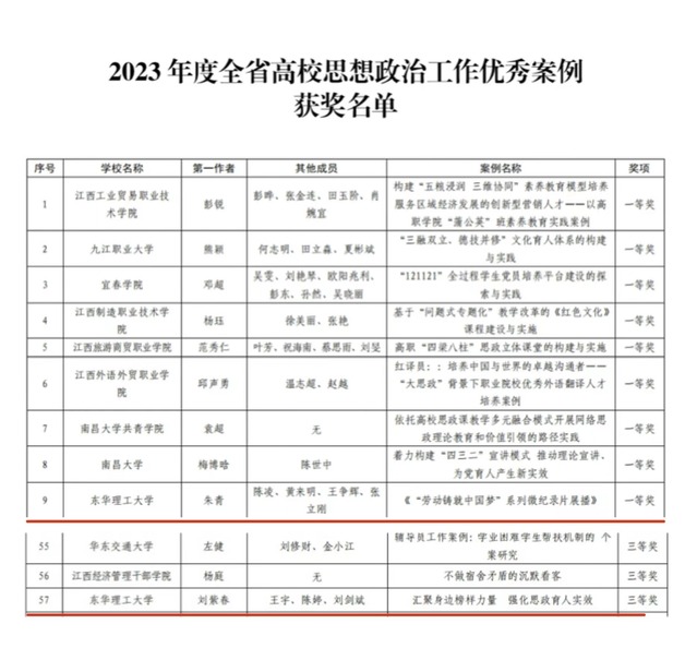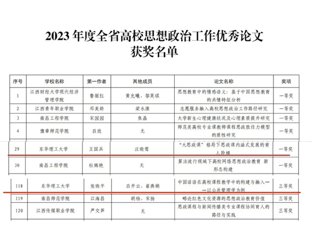 近日,江西省教育厅公布了2023年度全省高校思想政治工作优秀论文和优秀案例征集活动结果通报,爱体育官方网站获优秀论文一等奖1项、三等奖1项,优秀案例获一等奖1项、三等奖1项。