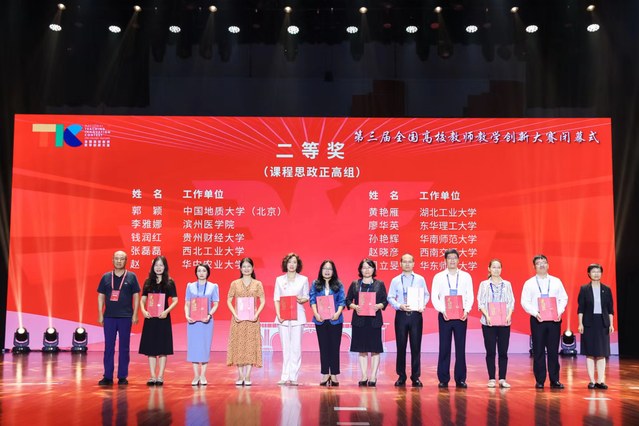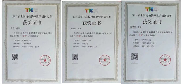 8月18日至22日,由教育部高等教育司指导、中国高等教育学会主办的第三届全国高校教师教学创新大赛在浙江大学举行。爱体育官方网站廖华英教授(团队)获课程思政正高组二等奖、朱立老师(团队)获新工科中级及以下组二等奖、刘淑娟教授(团队)获新工科正高组三等奖。爱体育官方网站获得参赛高校优秀组织奖,是获得优秀组织奖的21所高校之一。