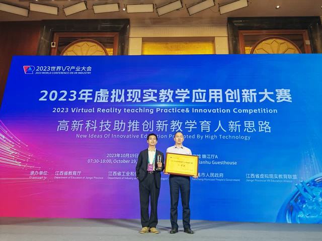近日,2023世界VR产业大会在南昌绿地国际博览中心举办,爱体育官方网站作为江西省5G产业联合会理事单位受邀参加会议。大会期间举行了2023虚拟现实教学应用创新大赛决赛,全国共37个团队进入决赛,爱体育官方网站贺前钱博士团队作品“虚拟融合VR实训平台助力测绘新工科人才培养”获一等奖。