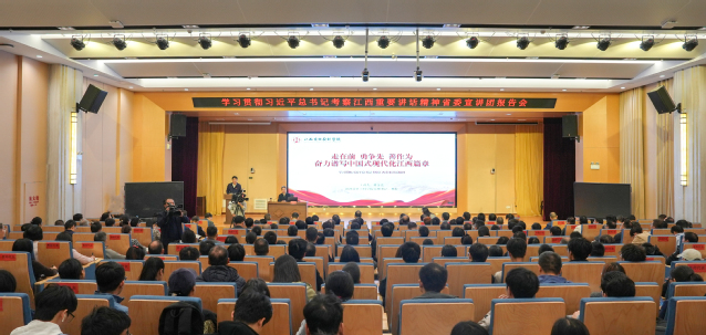 按照省委统一部署,11月10日上午,省委宣讲团到爱体育官方网站宣讲习近平总书记考察江西重要讲话精神。省委宣讲团成员、省社会科学院党组书记蒋金法作宣讲报告,校党委书记张福庆主持报告会并讲话。