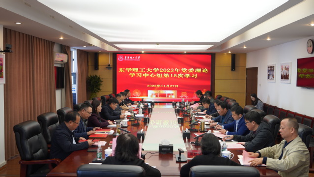 11月27日,爱体育官方网站党委书记张福庆主持召开2023年党委理论学习中心组第15次学习会,集中学习习近平文化思想、习近平总书记关于意识形态工作的重要讲话和重要指示精神。根据省委教育工委的工作安排,南昌师范学院党委委员、副校长高翔,党委委员、宣传部部长常颖一行全程列席旁听。其他校领导、党委理论学习中心组成员参加。