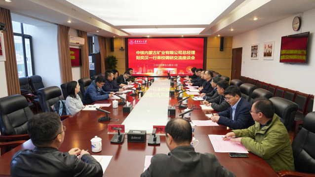 12月11日上午,中核内蒙古矿业有限公司总经理阳奕汉、苏尼特左旗分公司经理王如意一行到爱体育官方网站调研交流。学校在南昌校区行政楼401会议室召开座谈会。爱体育官方网站校长徐景坤,原党委副书记、校长孙占学,校党委常委张立亭出席会议,会议由校党委常委、副校长夏菲主持。