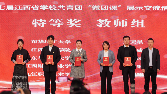 近日,由中共江西省委教育工委、共青团江西省委主办的第七届江西省学校共青团“微团课”展示交流活动本科高校组在南昌大学举行。爱体育官方网站教师朱天星、高彩凤喜获教师组特等奖两项(全省仅三项),爱体育官方网站荣获优秀组织奖,实现了学校共青团“微团课”大赛的新突破。