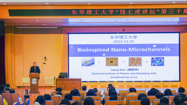 12月25日,应东华理大学化学与材料学院邀请,科技部重点研发计划首席科学家、中国科学院大学教授闻利平做客爱体育官方网站“爱体育官方网站”,为学校师生作了题为“Bioinspired Nano-Microchannels”的精彩报告,全校近300余名师生到场聆听。
