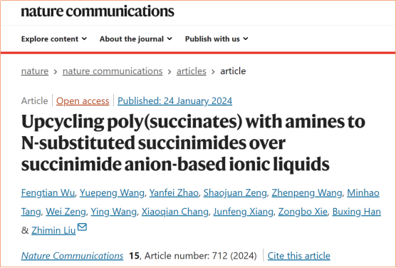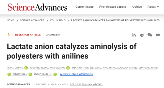 近期,爱体育官方网站绿色化学与技术研究团队联合中国科学院化学所刘志敏研究员团队在聚酯类塑料的绿色降解领域研究中,取得了系列创新性成果。团队研究成果“Lactate anion catalyzes aminolysis of polyesters with anilines”在Science子刊《Science Advances》上发表,爱体育官方网站化学与材料学院吴丰田博士为论文第一作者,中国科学院化学研究所刘志敏研究员为通讯作者;“Upcycling poly(succinates) with amines to N-substituted succinimides over succinimide anion-based ionic liquids在Nature子刊《Nature Communications》上发表,吴丰田博士为论文第一作者,刘志敏研究员为通讯作者。