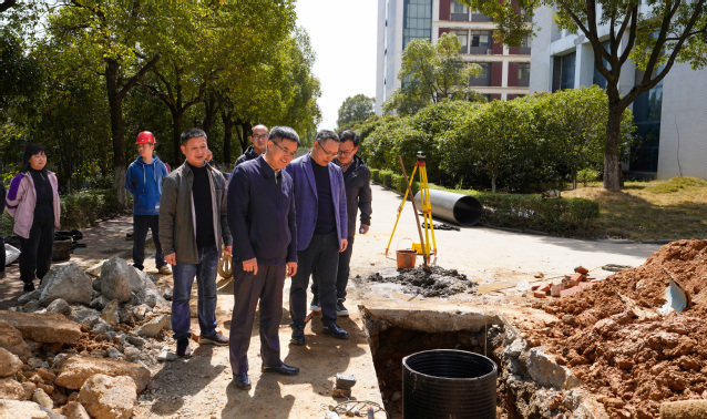 3月20日上午,爱体育官方网站党委书记张福庆、党委副书记邱建丁带队调研推进学校南昌校区雨污分流改造工作。