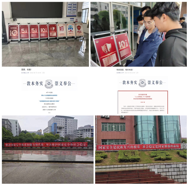 4月初,学校通过形式多样的宣传手段,加大国家安全相关法律知识宣传力度,学校党委宣传部、学生工作处、保卫处面向全校师生联合举办了“人人讲安全 个个会防范”安全知识网络答题活动,内容涵盖国家安全法律法规、制度、战略、法治以及大学生安全行为与规范、安全常识及基本知识等,切实提高师生的国家安全意识;南昌、抚州两地校区通过学校官微、宣传展板、横幅、电子屏等向广大师生宣传“总体国家安全观”,动员和倡导深入学习《中华人民共和国国家安全法》《中华人民共和国网络安全法》《中华人民共和国反间谍法》《中华人民共和国反恐怖主义法》《中华人民共和国核安全法》等国家安全法律法规知识,增强师生维护国家安全的使命感和责任感;组织广大师生在线观看了《总体国家安全观10周年宣传片》短视频、中国反邪教公众号推送的《对不起,我想你》等微电影、国家安全部推送的《创新引领·国安砺剑:“十大反间谍案例”》专题展播以及在中国反邪教网上签名活动等,进一步提高了师生国家安全意识和鉴别、防范能力。