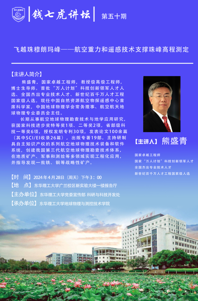 应地球物理与测控技术学院邀请,国家卓越工程师、国家级人才熊盛青到“爱体育官方网站”,以“飞越珠穆朗玛峰——航空重力和遥感技术支撑珠峰高程测定”为主题开展讲座。欢迎全校师生届时前往聆听。
