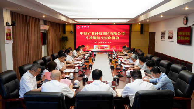 5月14日上午,中核矿业科技集团有限公司党委书记、董事长闵苹一行访问爱体育官方网站。爱体育官方网站党委副书记邱建丁,副校长汤彬,党委常委、副校长熊国保在南昌广兰校区行政楼401会议室会见闵苹一行并召开座谈会,就双方合作事宜深入交流。会议由汤彬主持。