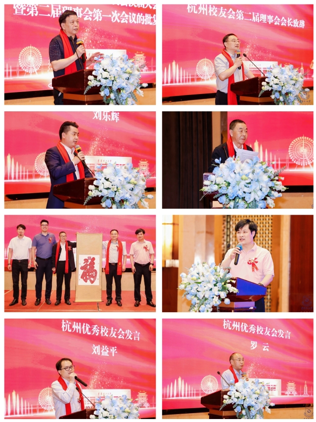 会上,北京校友会会长左红堂和上海校友会会长刘乐辉作为地方校友会代表发言,北京校友会为杭州校友会送上剪纸画。优秀校友代表罗云、刘益平与到会校友就创业思路及个人经验进行分享。