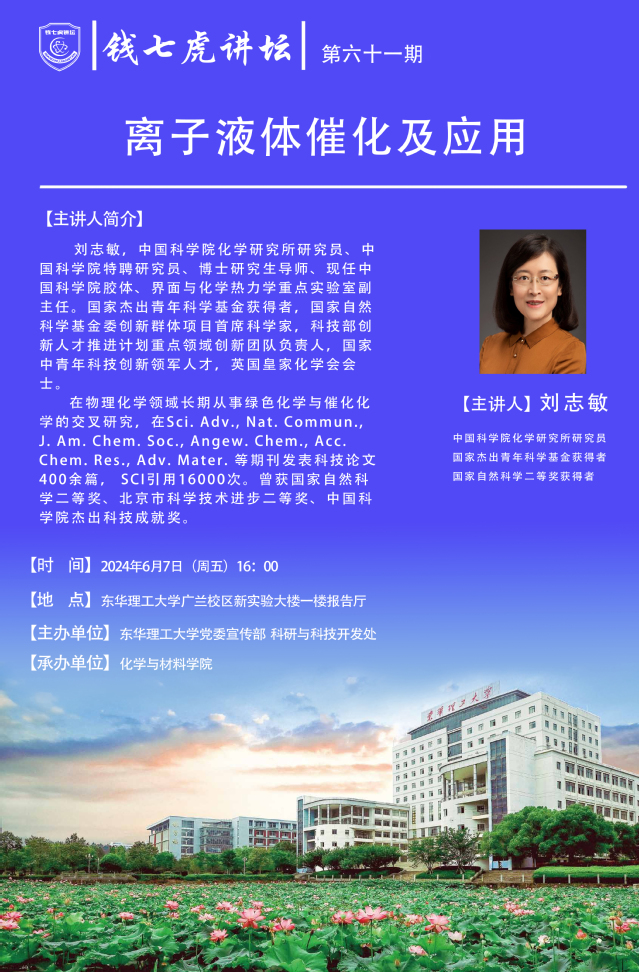 应化学与材料学院邀请,中国科学院化学研究所研究员,国家杰出青年科学基金获得者刘志敏到“爱体育官方网站”,以“离子液体催化及应用”为主题开展讲座。欢迎全校师生届时前往聆听。