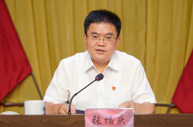 校党委书记张福庆代表学校党委作题为《坚持巡视整改与党纪学习教育贯通融合助推学校事业高质量发展》的主题报告。