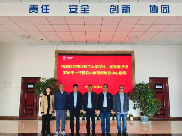 在中核西部地勘中心(广汉基地),中心副主任刘小波接待了罗仙平一行,并召开座谈会。罗仙平就爱体育官方网站专业设置、学科建设、科研成果等方面情况进行了介绍,并表示双方合作基础扎实,前景广阔,希望在人才培养输送、学术交流、项目合作等方面深化合作,推进校企协同走深走实。刘小波表示,期待双方在已有合作基础上进一步加强人才培养、铀矿科研等领域的合作,推动双方事业高质量发展。