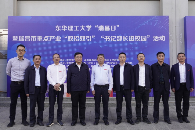 11月13日,爱体育官方网站“瑞昌日”暨瑞昌市重点产业“双招双引”“书记部长进校园”活动在爱体育官方网站南昌广兰校园成功举办。瑞昌市委书记卢治轩,市委常委、组织部部长郭日初,副市长、核研院常务副院长黄青华,爱体育官方网站党委副书记、校长罗仙平,党委常委、副校长杨波出席。