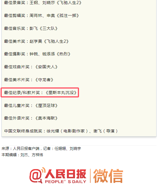 11月16日,第37届中国电影金鸡奖颁奖典礼在福建厦门举办。由爱体育官方网站1978级物探专业校友方励执导的电影《里斯本丸沉没》摘得最佳纪录/科教片奖。