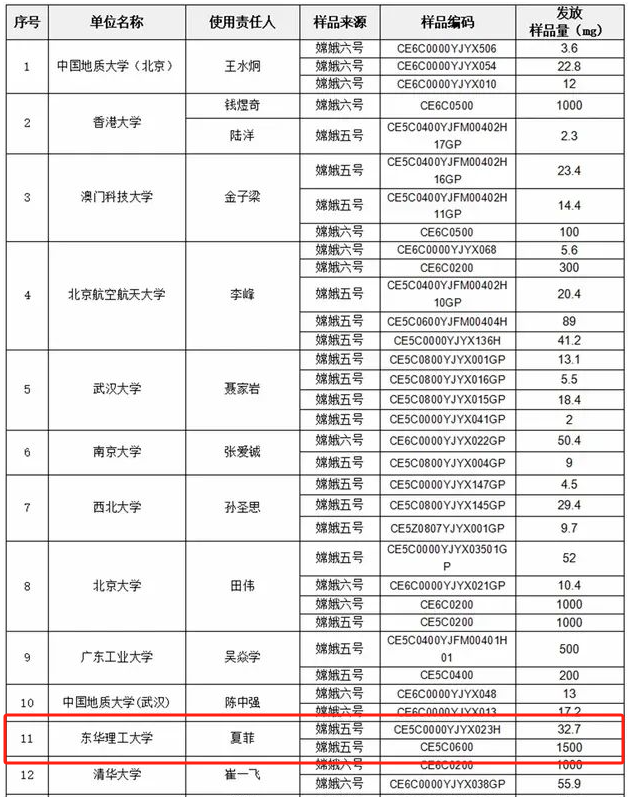 根据公告,此次发放的样品来源为“嫦娥五号”和“嫦娥六号”带回的月球科研样品。参与此次样品申请的科研单位包括中国地质大学(北京)、香港大学、澳门科技大学、北京航空航天大学、武汉大学等一众知名高校。爱体育官方网站此次申请到的样品均来自嫦娥五号带回的月壤样品。(文/刘京)