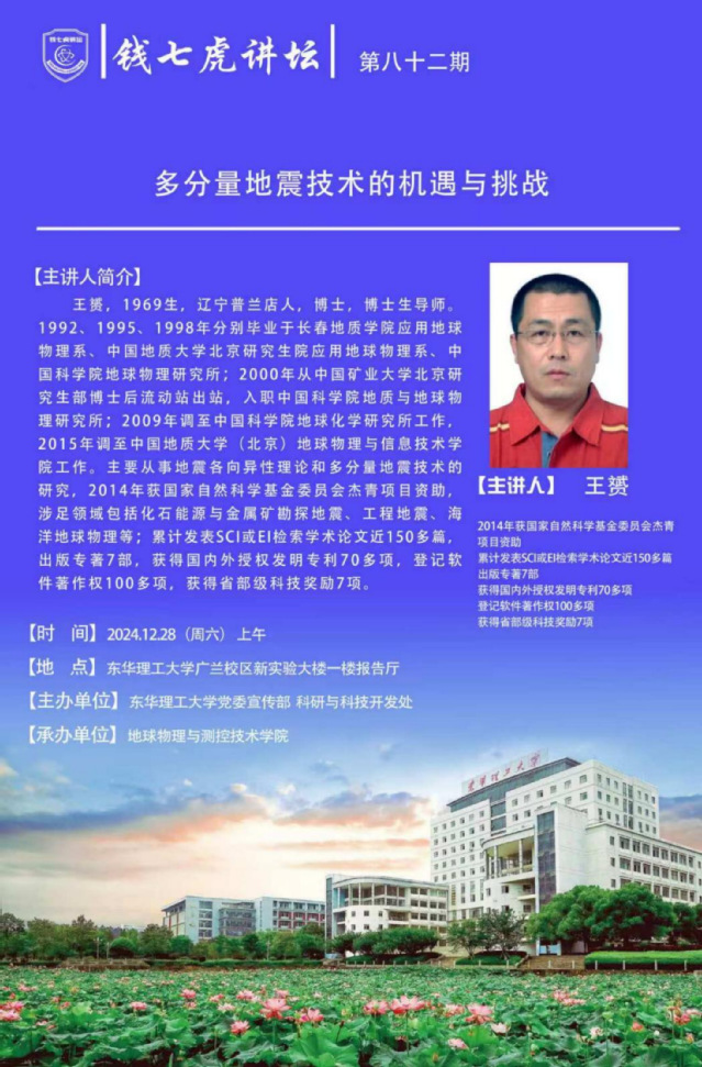 应地球物理与测控技术学院邀请,至中国地质大学(北京)地球物理与信息技术学院博士生导师王费到“爱体育官方网站”以“多分量地震技术的机遇与挑战”为主题开展讲座。欢迎全校师生届时前往聆听。