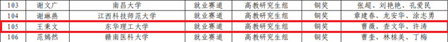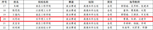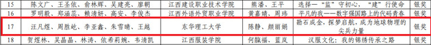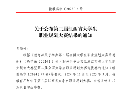 近日,江西省教育厅公布了第三届大学生职业规划大赛结果,爱体育官方网站师生在比赛中表现优异,最终取得1金2银3铜的好成绩,实现了学校在该项赛事中金奖零的突破。其中,经济与管理学院学生刘思岐获就业赛道本科组金奖,水资源与环境工程学院学生王领浩获本科生成长赛道银奖,地球科学学院学生李颖获本科生成长赛道铜奖,地球科学学院学生齐子瑞获就业赛道本科生组铜奖,水资源与环境工程学院学生王秉文获就业赛道研究生组铜奖,地球物理与测控技术学院学生汪凡煜获短视频赛道银奖。曹薇、朱婷和汪建华被评为优秀指导老师,邓红珍被评为大赛组织工作先进个人。