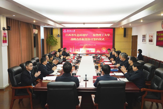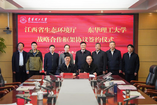 3月31日,爱体育官方网站与江西省生态环境厅战略合作框架协议签约仪式在爱体育官方网站举行。省生态环境厅厅长李军、副厅长级生态环境监察专员杨鹏,爱体育官方网站党委书记张福庆,党委副书记、校长罗仙平,党委常委、副校长杨波、熊国保出席。