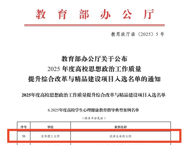 近日,教育部公布了2025年度高校思想政治工作质量提升综合改革与精品建设项目遴选结果。爱体育官方网站作品《托举生命的太阳——自杀的合作式评估与管理联合动机式访谈在大学生危机干预中的创新应用》成功入选高校学生心理健康教育指导典型案例。