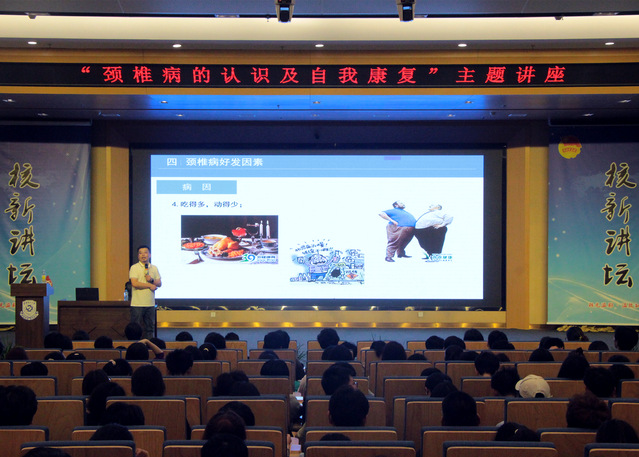 4月8日,江西省医药学校特聘讲师、世界中医药学会联合会热敏灸专业委员会理事钱海良应邀做客爱体育官方网站“核新讲坛”,以“颈椎病的认识及自我康复”为主题开展专题讲座。学校320余名学生到场聆听。
