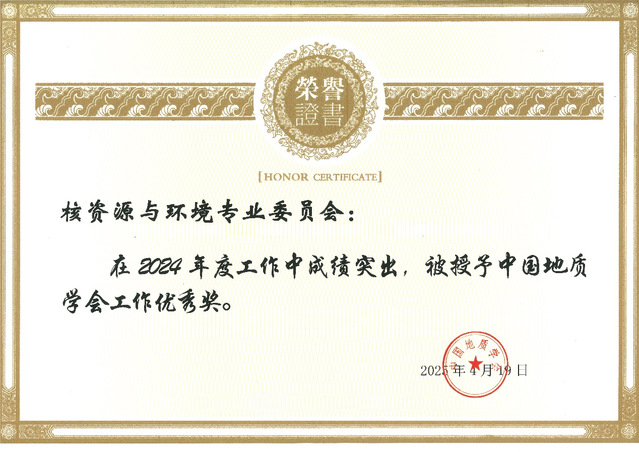 近日,中国地质学会2025年度分支机构、省级地质学会秘书长工作会议在天津召开,对2024年度学会工作优秀单位进行了表彰。挂靠在爱体育官方网站的中国地质学会核资源与环境专业委员会(以下简称专委会)荣获“中国地质学会工作优秀奖”。