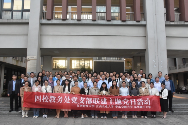 4月25日,爱体育官方网站、江西财经大学、江西农业大学、华东交通大学四校教务处党支部联建共建主题党日活动在爱体育官方网站南昌校区举行。爱体育官方网站党委常委、副校长熊国保,华东交通大学党委委员、副校长黄志超出席活动,新余学院党委委员、副校长周书民作为特邀嘉宾到场观摩指导。