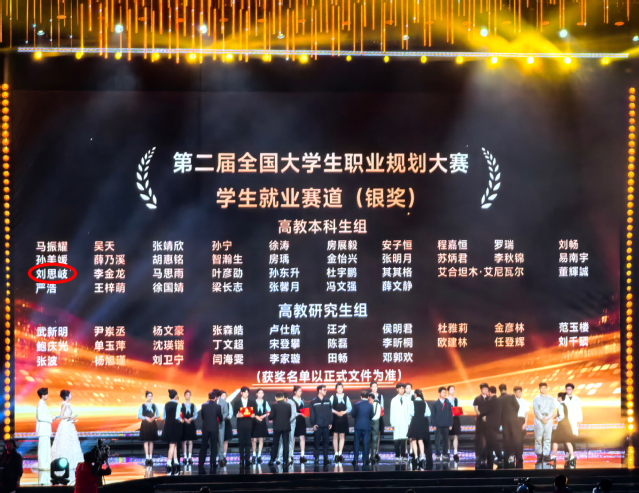 近日,由教育部与湖南省人民政府共同主办的第二届全国大学生职业规划大赛总决赛在长沙落下帷幕,爱体育官方网站经济与管理学院学生刘思岐获就业赛道高教本科生组银奖,实现了学校在该赛事中的历史性突破。